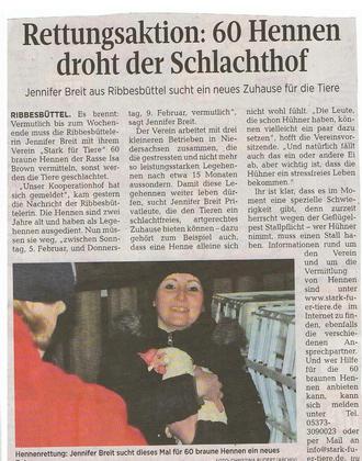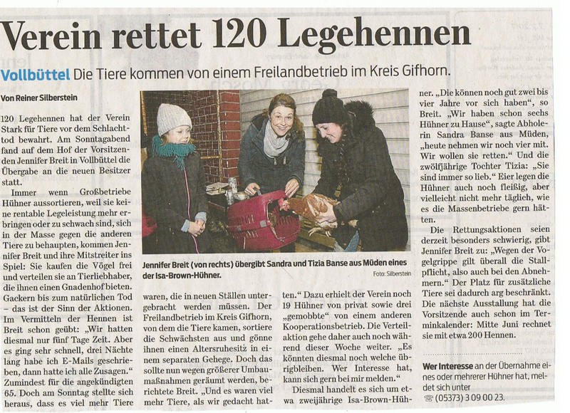 Hier zwei Artikel über unsere Rettung. Anmerkung zum unteren Artikel: Die Hennen werden von uns NICHT freigekauft, wie es fälschlicherweise dort behauptet wird. Wir übernehmen die Tiere KOSTENLOS, geben sie aber gegen eine Spende ab, da für uns Kosten wie Schutzkleidung, Transporter, Sprit usw. anfallen.
