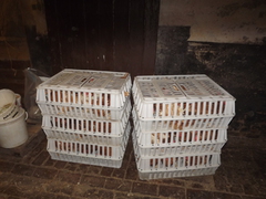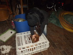 Hinzu kam, dass wir bei der Abholung der Hennen im Betrieb feststellten, dass es sich nicht, wie angekündigt, um ca. 60, sondern um 98 Hennen handelte! Kurzzeitig hatten wir also die Sorge, doch nicht genug Plätze für die Tiere zu haben.