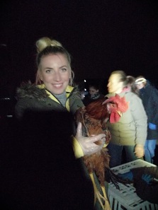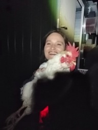Der mobile Stall, den wir dieses Mal leerten, war geräumig, aber leider waren die Hühner nur von einer Seite erreichbar, so dass wir auf dem Bauch in die schmalen Zwischenräume robben mussten, um an die Tiere zu kommen... Blaue Flecken und zahlreiche Prellungen blieben nicht aus... Aber das lohnt sich für diese wundervollen Wesen!