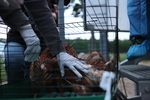 Die Isa Brown Hennen kommen aus Freilandhaltung, aber auch in dieser Haltungsform ist es üblich, die Hennen nach einem Jahr Legeperiode – sie sind zu diesem Zeitpunkt ca. 15 Monate jung – durch jüngere, „leistungsstärkere“ Hennen zu „ersetzen“. Die im Fachjargon „Legehybriden“ genannten Hennen legen dann nicht mehr täglich, sondern vielleicht nur noch 3 bis 4 Mal in der Woche ein Ei und sind somit für den Betrieb schon nicht mehr rentabel.